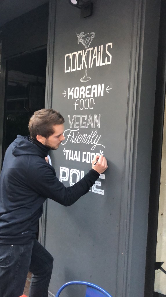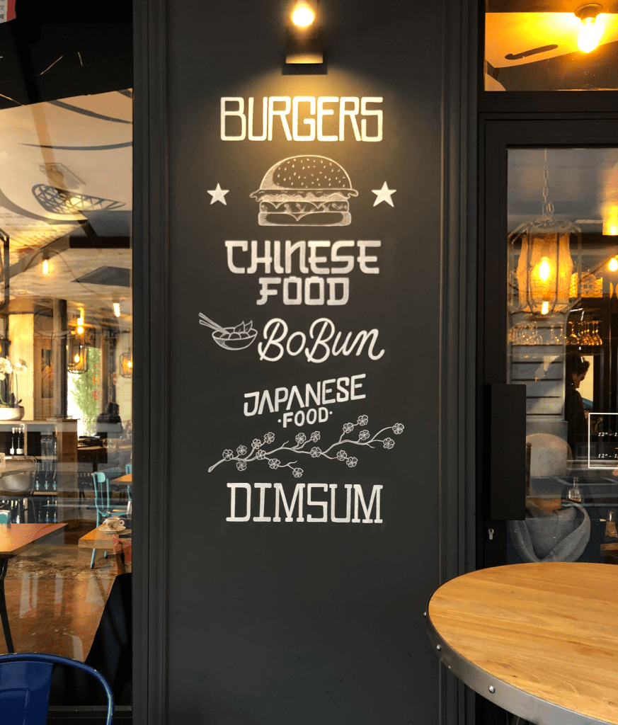 Un bout d’asie de l’Est en plein Paris. Lettrage 360° pour ce restaurant de street food taïwanaise.