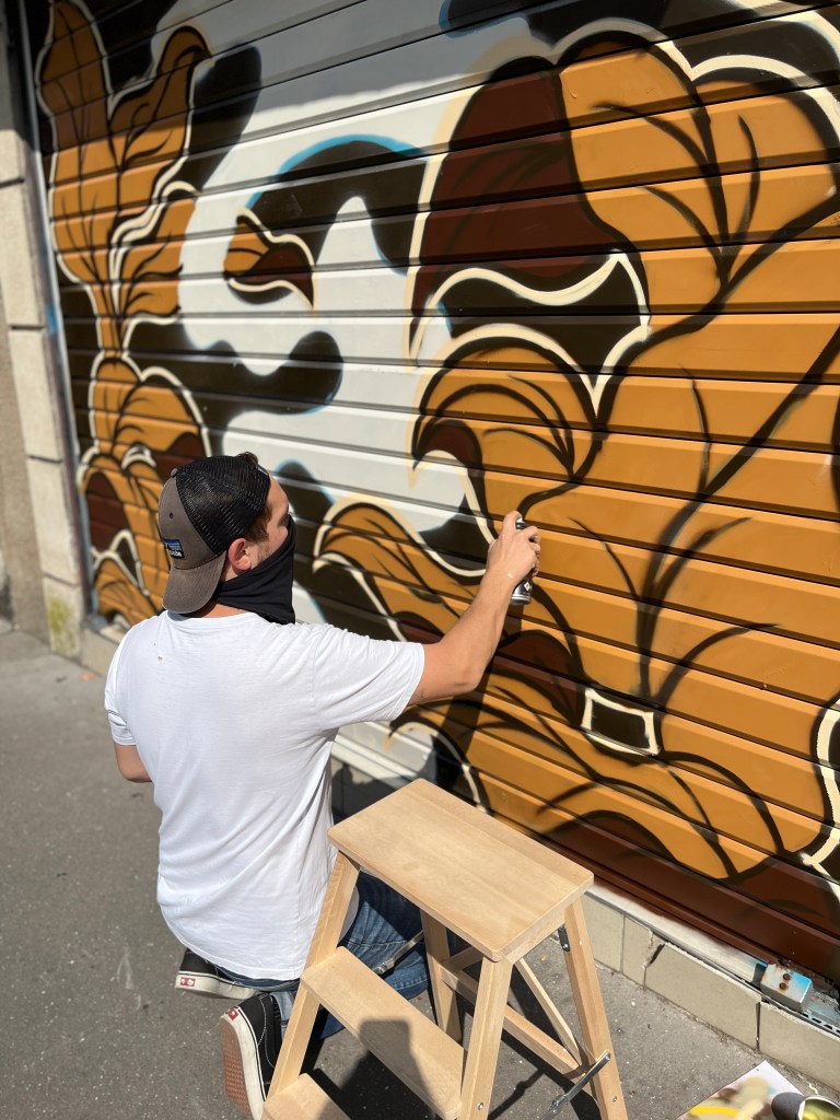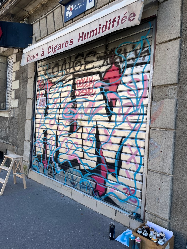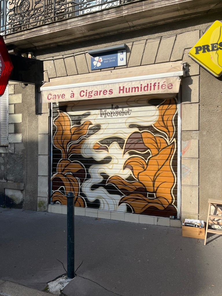 Feuilles de tabac et volutes de fumée à la bombe de peinture pour ce tabac – cave à cigares.